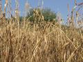 There I parked the bike and went in company of some villagers who had been eagerly waiting for me up the hill, following a small path leading in direction of the Confluence. First, the path was leading through a field of Guinea corn where the villagers had started to harvest, then through a bamboo forest always further up the hill and closer to the Confluence. 400 metres from the Confluence lay a small hamlet. From this hamlet the walking got easier.