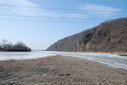 21-Nov-2007 – Having driven back from Roshchino and from previous visited confluence, we had no to lose an opportunity to visit this point so it's located in 3.5 km northwards from the motorway. But it is on another side of Bol'shaya Ussurka river. All pools were frozen, the river was covered by ice, mostly in 20 cm thickness. That's why we decided not to make a 50 km off-road detour, but to go straightforward instead. That time to drive till the river bank was very easy deal. And now only 1.8 km left to the CP. We overpassed the river afoot onto ice and then climbed to the mountain pass (250 m high) along the electric power line. Having descended from the pass we had to walk about 1 km along the clear forest and frozen bogs. That time we were thinking that it should be better to drive so the quite appropriate road passed along the power line near the confluence. But we were already at the exact confluence spot while our car was behind the river.