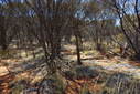 Due to the “Cross Country” nature of our track in, when we reached a point as close as possible to the confluence, I was greeted to the sound of a very fast deflating front tyre. Repairing the puncture before heading off, it was a very easy walk through stands of Mulga and Marble Gums. The real giveaway that we were near the exact location, was a star picket left by the previous group in 2007. My advice to any would be first time confluence seekers, is do not leave any traces of your visit, as this man made object is so out of place in this truly remote and pristine location. The dense stands of mulga at the location made the usual confluence dance take a little longer to get those magic numbers, then the required photos.