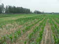 Ignoring the workers in the fields, who in any case are engrossed in their own task of spraying bug killer, we make our way 80 m across the wheat-cum-cornfields to the confluence, and snap the GPS photo and shots facing north, south, east and west.
