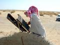 Our detailed maps and some main tracks, albeit hard to follow over a few narrow necks of sand, came to our aid, and we arrived at the Confluence very soon after decisively leaving the dunes. It was within sight of a village, and shortly after we arrived a water tanker populated with waving children zoomed past. Two more visitors arrived in quick succession. As always on these occasions we regretted that our knowledge of Arabic was so limited, but we did establish that there was petrol available in the village, and (probably!) that we were not surveying for a tarmac road, and that despite our desert boots we were not from the military.