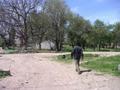 17-Apr-2005 -- Another few weeks in Karshi and another weekend to kill. This point is 15 km from the town of Shakrisabz. On a warm Sunday morning I caught the minibus from Karshi. A journey of 90 km at a cost of 1 USD. After a stroll and a pot of tea/salad/bread and shashlik (50 US cents) I went to find a taxi driver who would understand the mission. I was lucky with Nabi and we were soon heading east through green countryside towards the snow covered mountains which mark the border with Tajikistan. Armed with GPS, map and satellite image of the area finding the spot was not difficult. A road led to within 100 metres and then we reached a wall. We were lucky that a guard let us in and after waiting for the owner to complete his prayers we were welcomed and together we visited the spot – in the middle of his farmyard. The farmer told us that his eldest son was keen on the internet and is learning English so he would read the entry and write to me. See how this project promotes international relations!
