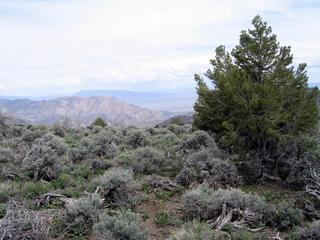 Picture #1 shows the general area and the tree at the confluence. Picture #2 looks north towards Cornish Peak. Buena Vista Valley and Alkali Flat are in the distance. Picture #3 looks east across the Stillwater Range. Dixie Valley is in the distance. Picture #4 looks south across the south end of Table Mountain. Picture #5 looks west. Carson Sink is visible in the distance. Picture #6 shows my GPS location. Picture #7 is from halfway up the hill looking southeast towards where I started my hike. Picture #8 shows the cows on top of Table Mountain. Picture #9 shows the final vertical step and the last remaining winter snow before I was on top.