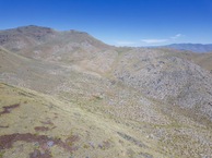 The point lies on the South-facing slope of a hill, at an elevation of about 6240 feet. (The summit of the hill is about 300 feet higher, so I was able to fly over it with my drone.) The point looks exactly the same as I remembered it from my previous visit. Unfortunately the annoying rock cairn (with a geocache box) is still there, but I was able to put the cairn to some use, by using it as a launching pad for my drone.