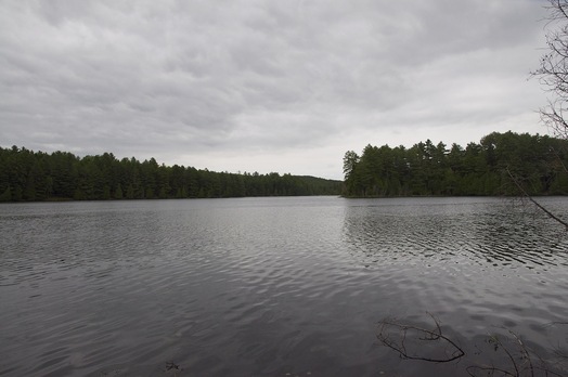 Sure enough, when I got the end of the peninsula, I found that I was 94 metres from the point. According to my GPS receiver, the location error was +/-4 metres, but without receiving a WAAS satellite. Whenever I get a GPS reading without WAAS, I assume a minimum error of +/-5 metres, even if my receiver shows a smaller error. So, I assume that I got at least 99 metres from the confluence point - barely enough to count as a successful visit!