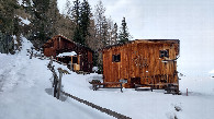 This CP is located in the Ötztal. So we had to take the northern route via the A 12 motorway and road 186. After passing the name giving village Oetz we reached the village Mühlau and took the way up to Granstein. After a short distance the road leads through a small natural tunnel. Around one kilometre later I parked the car in front of a holiday home. Reason for this was the snow on the way towards Jausenstation Hochwald. This location was closed due to the time of year. From this little settlement on the way leads steep up on a forestry road through a conifer forest. After circa 1000 m and a few serpentines we reached the gate, photographed by former visitors. This gate has now been dismounted and stands on the right lower side of the way, in front of two farm houses. From this point the distance to the confluence point is only 50 m. The snow was quite old and hard. So it was no problem to step on it and to reach the exact location, which is located about two meters upwards left of the way. Under best conditions: no wind or storm, no precipitation, a slight cloud cover and not too cold for a February, I was able to take the needed pictures. Instead of my handheld I had to use my mobile with the app GPS-Status to show the exact coordinates. The way after another 300 m upwards, I saw two more farm houses.