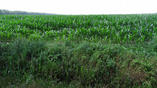 We came from north by takin the road Provincialeweg and neared the CP 53°N-07°E by passing the small town Stadskanaal. We followed the GPS by taking Onstwedderweg and crossing the A. G. Wildervanckkanaal. Finally the road Ter Maars took us very close to the CP. I parked the car at 103 m beeline to the CP. I realized that the confluence point is located inside a field of maize. So I just had to take the driveway to the field an to go to the point. But I didn't want to damage any single plant so I decided to solve this visit without all the zeros on the display. It was possible to walk a some meters on the field, because the first few lines of plants were grewing quite puny. I took the pictures at a distance of 82 m from the confluence point 53°N-07°E.