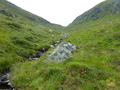 When I finally reached the cp (after about an hour) it turned out to be only 122 m above sea level and about 300 m from the shore. Approaching the cp from the sea would definitely have been easier. The cp was only a few meters from the stream which ran down the east-west valley. The stream came from a lake to the east of the confluence point. The north side of the valley where I had climbed down was densely overgrown, but the south side was mainly covered in grass and much easier to navigate. So for my return I went up the valley towards the lake. It was not very steep, but perhaps a bit longer. It took just half an hour.