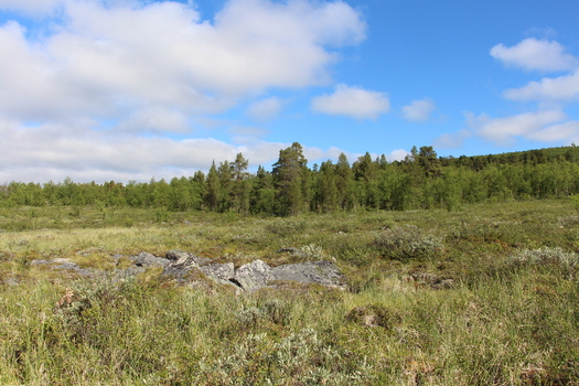 Von der 45 her kommend wieder auf der E 10 fahre ich in Richtung Kiruna. Nach einem Rundgang des neuen Kiruna und einer Pizza vor Ort, fahre ich weiter in Richtung Abisko. Rund 10 km nach Kiruna finde ich direkt nach der Brücke über den Rautas Fluss einen Rastplatz. Ein für mich idealer Platz um am nächsten Morgen den von hier knapp 4 km entfernten Schnittpunkt, bei dem ich vor 2 Jahren gescheitert war, jetzt ein 2 tes mal zu versuchen. An nächsten Morgen fahre ich wieder rund 2,5 km in Richtung Kiruna zurück, und Parke mein Auto an einer Parkbucht der E 10. Dies ist auch hier meine nun Startposition und noch gut 3 km zum Ziel. Auf der anderen Straßenseite etwas zugewachsen sehe ich ein Schneemobil Zeichen, also ist hier auch ein im Sommer passender Weg zu finden, der auch gerade zufällig in meine Richtung führt.