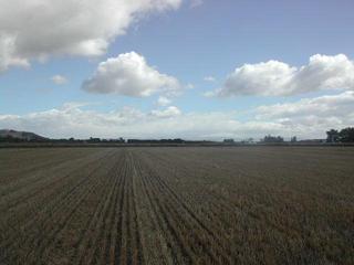 28-Feb-2005 -- Visiting this confluence means one stop during our journey throughout this wonderful country New Zealand. That was a really easy one, we were fortunate. No big preparations, no long, exhausting walks, very good reception. We didn`t even have to climb over a fence, because the lattice gate was just locked with a chain but no lock. Even the wheat had been mown some time ago!