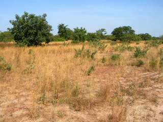 My good French friend Richard loaned us his 4X4 Toyota and driver, and we set out for 12N 1W. I knew from our Landsat satellite images that it fell squarely within a forest reserve, the Forêt Classée de la Nakambé, and that driving to the actual Confluence might be a challenge. I also knew that most forest preserves in the West African Sahel are often degraded, open shrub and tree savannas. We hoped to get close enough to hike through the bush on foot. This was not to be. We found a serviceable track into the "forest", but it petered out 20 km from the Confluence. We were unprepared for the 40 km roundtrip hike in 100°F heat. Alas, we had to turn back to Ouagadougou without the prize. We do plan to make a second attempt to reach 12N 1W in the near future.