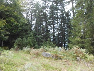 We leave the main road in Gortipohl. After parking our car at a pub in the valley, we search in vain for a good spot to climb the slope. So we decide to follow the valley, and after some turns we park next to a farm at the end of the road. We follow a steep trail around a pasture and in the woods until we reach a clearing. We do our confluence dance around the mountain hut.