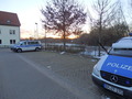 After a train ride of 50 minutes, my train reached the station in Angermünde, which is 2.3 km walking distance from the confluence point. Right at sunrise, I reached the parking lot of the Bundespolizei. The question was whether I should first go inside and ask for permission to take pictures or just take the pictures and see what happens. I decided to do the latter, because asking might not have lead to a permission to take pictures such that the result would have been that I would have to leave empty-handed. Therefore I went on the parking lot and took the pictures quickly (good decision).