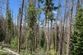 In the morning, it was time to set out on my mountain bike. I was already at about 9600 feet and it was easy going as I gradually climbed to just over 9800 feet (highest point on my trek) in a large clearing where several salt licks were out for the large game. I turned left here and the rest of the way was simply coasting downhill along the logging road. At about 30 minutes in, my rear tire blew out and it was time to leave my bike and continue on foot. A short time later, I saw a bear on the road about 50 meters ahead of me. I very loudly declared my presence and intent to continue down the road. He wandered off down the hill and for the rest of my hike I made sure I was making a lot of noise. The road was very easy to follow however, travel by ATV would have been stopped short by a few fallen trees across the road.