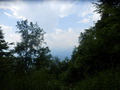 The confluence point is located right on the hillside of a forest track in a dense forest, consisting of various tree species. I climbed upwards and downwards through the undergrowth in order to reach the exact location, but the GPS fooled me around until my patience was exhausted. Through the trees, the Piave river valley can be seen 600 m below.