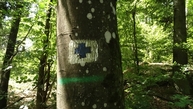 From the Motorway ("Autobahn") A81 I took the exit 13 Mundelsheim and followed the road direction west. I crossed the Neckar River and passed Besigheim. On the road L1106 I reached Hohenhaslach. About 300 m behind the village I found a parking place and started the hike. Altogether, I had to walk about 850 m to reach the CP. The trail is marked with a blue cross on white underground. The track leads upwards from the parking position to the CP. After 120 m difference in altitude I reached the vicinity of the CP. 50 m before the exact location I found a very good information post regarding this confluence near the trail. Soon the exact location was found on a little hill, next to a bigger trail. This main trail is named "Kropfigweg". The pictures of the GPS and the geographical directions were taken quite soon.