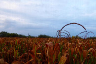 At the gardens we cross a dry ditch and walk over a dried-up bean field to the south. At the end we walk about 30 meters into a field with tall corn.