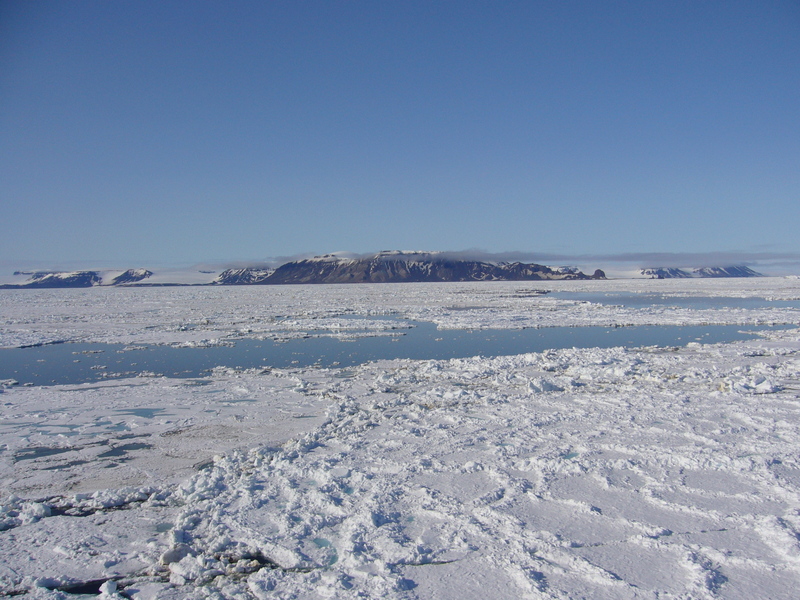 View north: Gallja (Hall) Island with Cape Tegetthoff (center right)