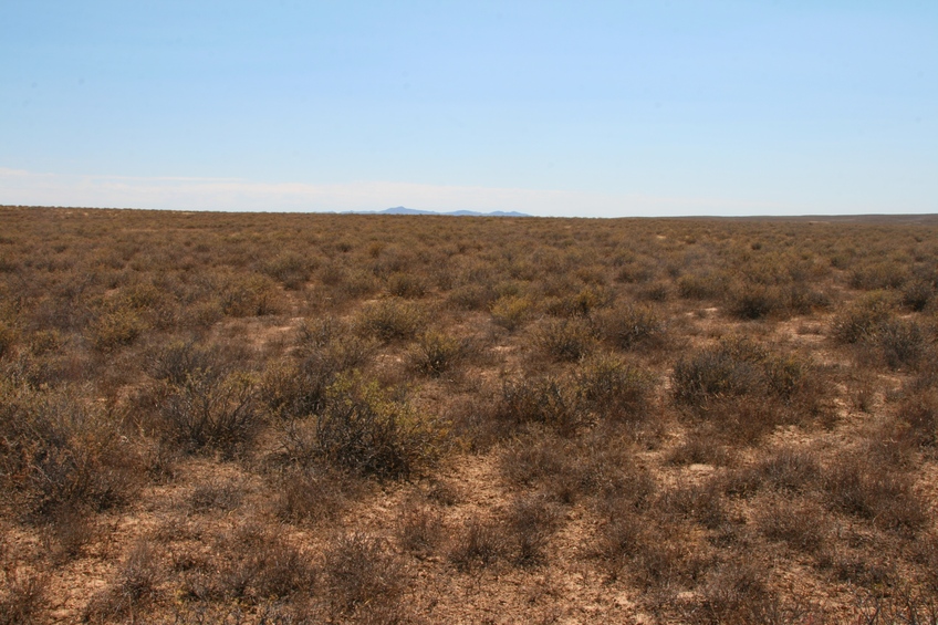 View South: Zhambyl Mountains with highest point at Kyzylbelen, 972 m