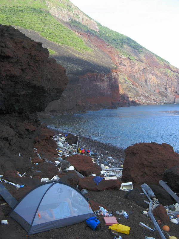 #7 #8#9#10ALL A rough camp on the uninhabited Yokoate-jima on the morning of the confluence visit. In East Asia, where environmental thinking is still in its infancy, this amount of flotsam is normal even on the remotest coasts. #1#2#3#4#5#6