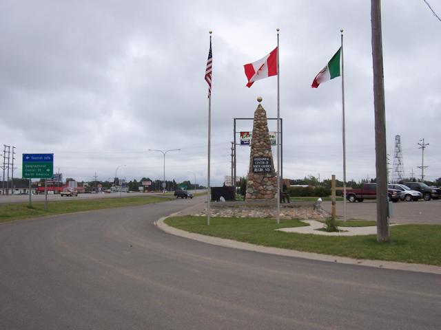 #1: Geographical Center of North America in Rugby, ND with the flags of Mexico, Canada and the USA.