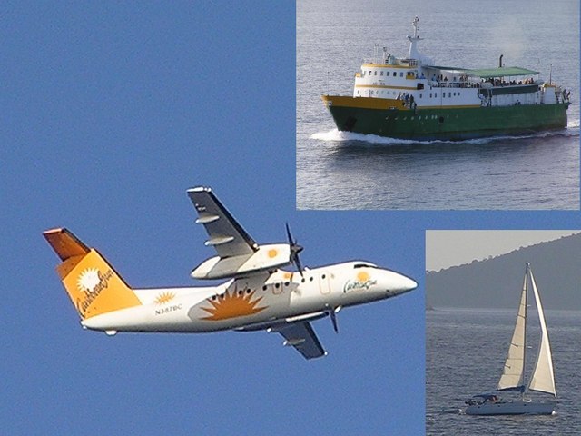 #9: A ferry between Kingstown and the Islands of the Grenadines group, an airplane of the "Caribbean Sun" Airlines, and several yachts are in the area