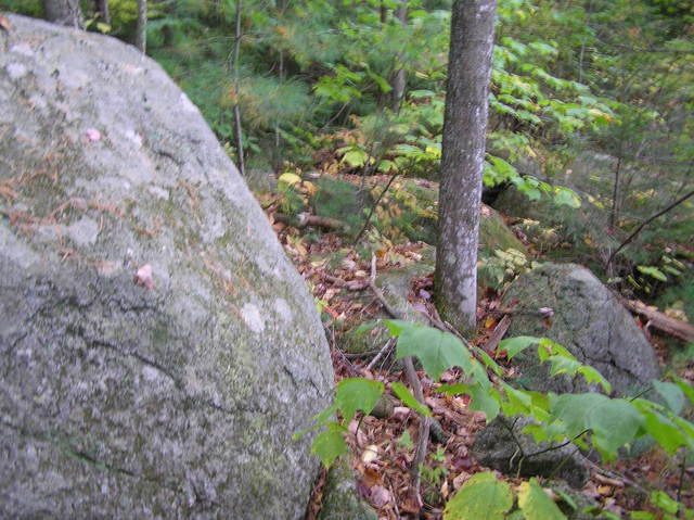 #1: Looking southeast at the confluence adjacent to boulder at 43 North 72 West.