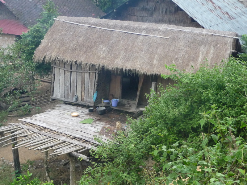 #4: Typical house on the way to the confluence with sustenance of dried river fish and rice fields.