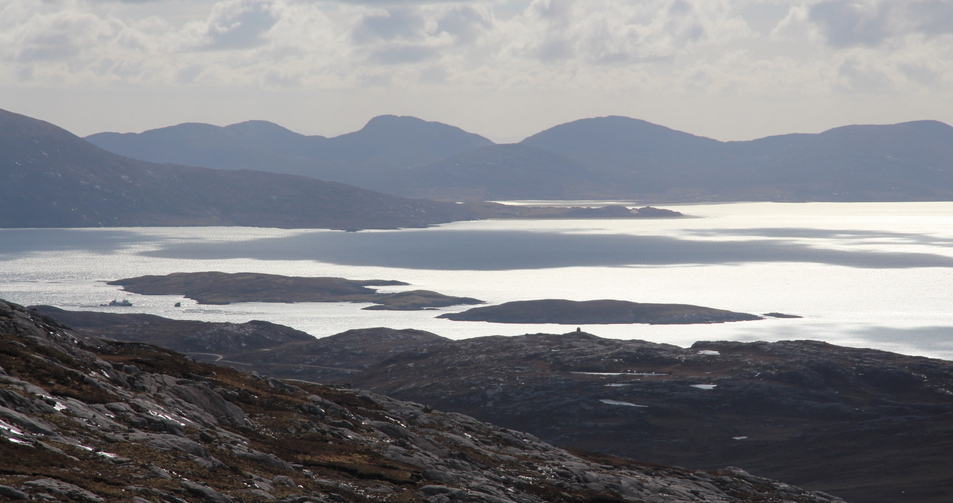 #11: Looking back from South Harris - Confluence high up in the centre of the picture
