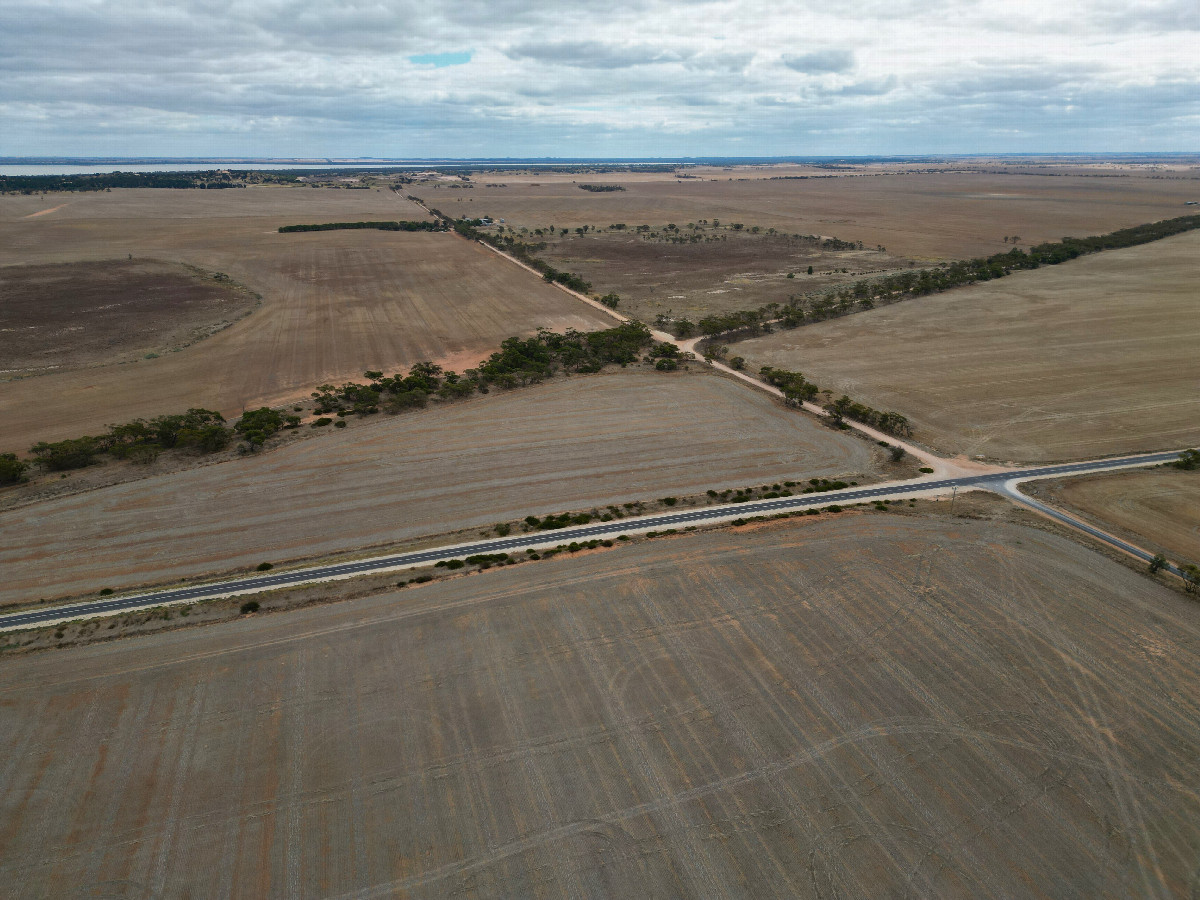 #1: The confluence point lies in a recently-harvested wheat field. (This is also a view to the North, towards a road 250m away.)