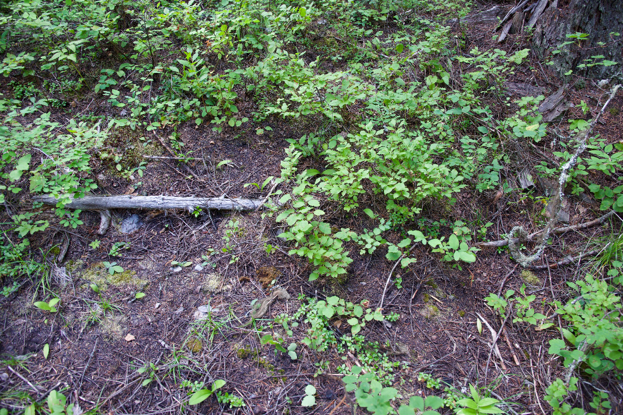 #1: The confluence point lies in a patch of forest, just 50 feet from a logging road. (This is also a view to the South, towards the road.)