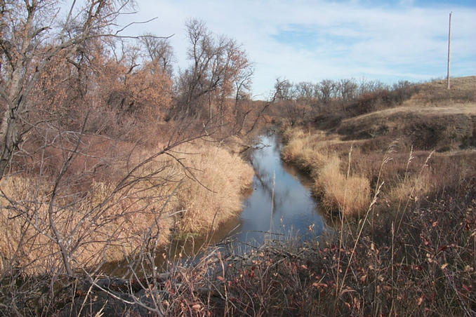 #4: Looking east along Long Creek. The confluence is located on the right bank below the utility pole.