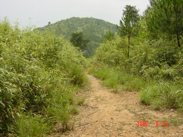 #2: Narrow muddy path heading uphill directly towards confluence.