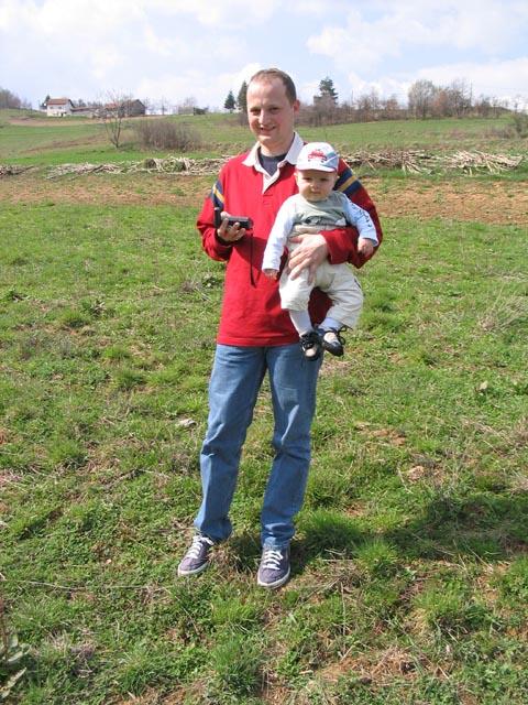 #9: View south from the car: the confluence 180 m down the hill. Snow capped Mount Bjelašnica on the horizon.